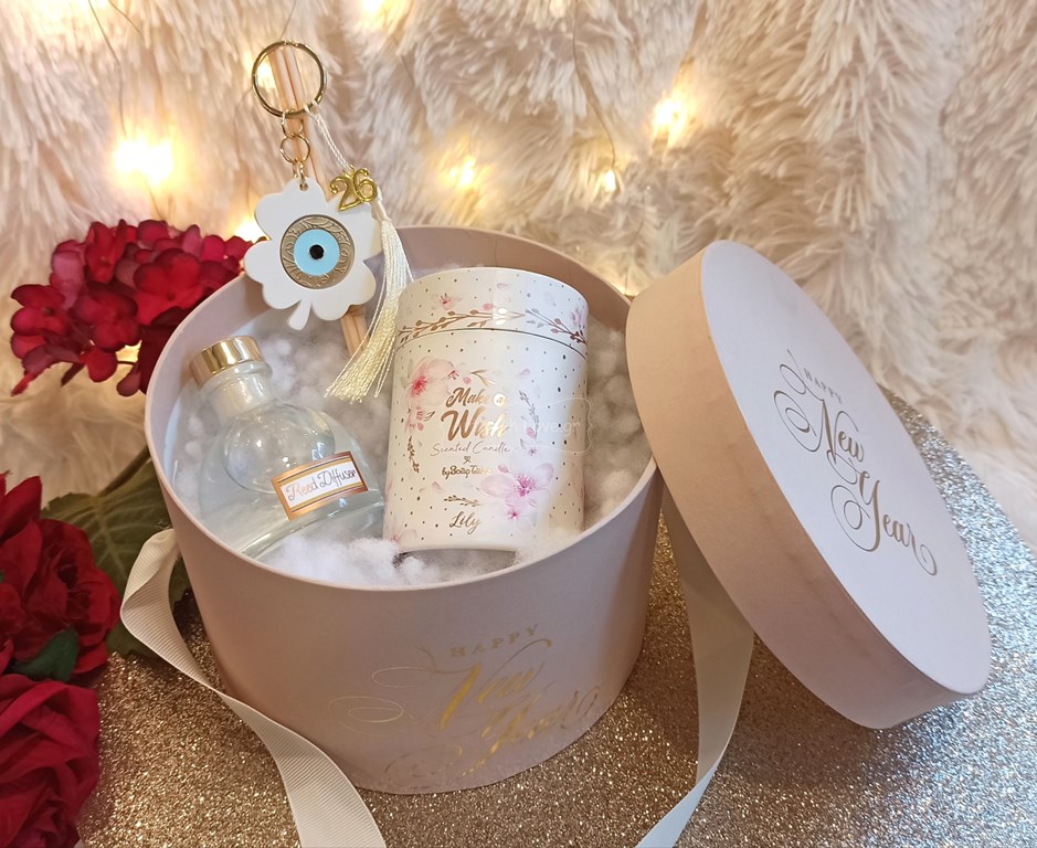 Ένα υπέροχο σετ δώρου που περιλαμβάνει Αρωματικό Κερί, Diffuser και ένα γούρι μπρελόκ.
