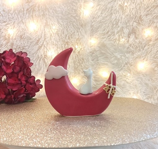 Χειροποίητο κεραμικό φεγγάρι με γατούλα και συννεφάκι.
