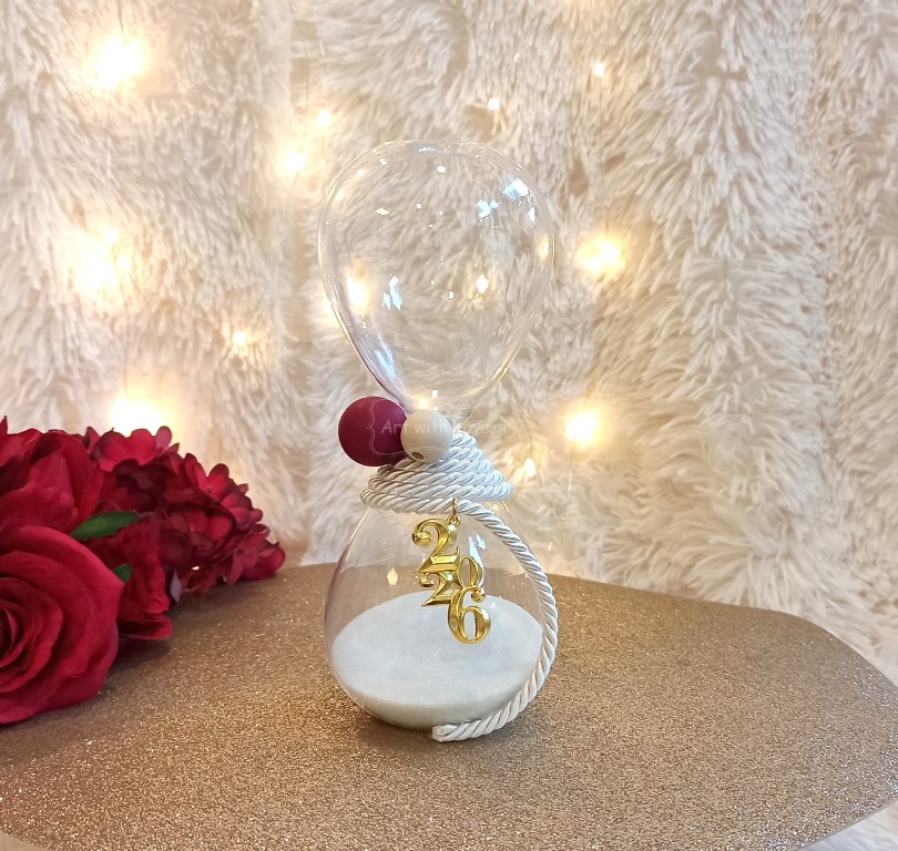Γούρι Κλεψύδρα με Λευκό Κορδόνι