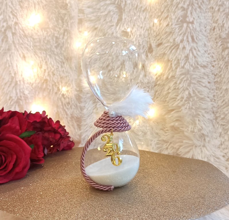 Γούρι Κλεψύδρα με Ροζ Κορδόνι και Πούπουλα