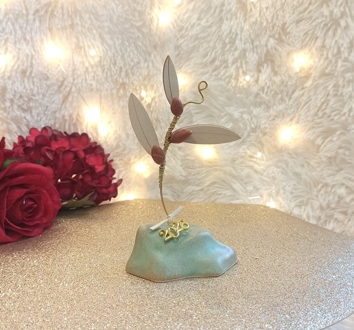 Χειροποίητη κεραμική ελιά με καρπούς σε πράσινη βάση
