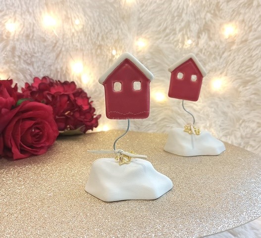 Γούρι Κεραμικό Σπίτι Κόκκινο σε Βάση