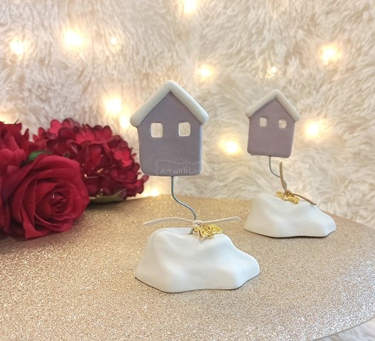 Γούρι Κεραμικό Σπίτι Λιλά σε Βάση