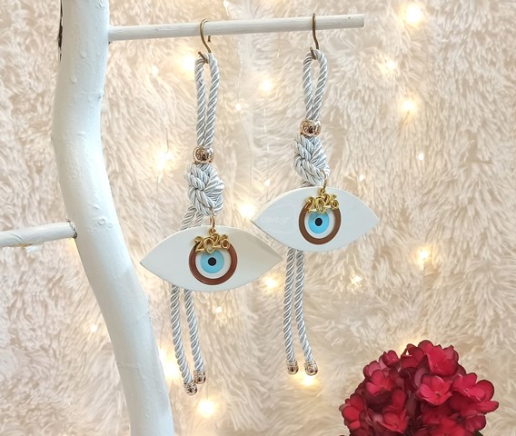Γούρι από κεραμική ρητίνη με μάτι και κορδόνι.