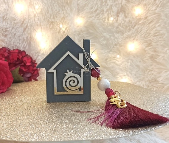 Γούρι Σπίτι Γκρι με Ρόδι και Φούντα