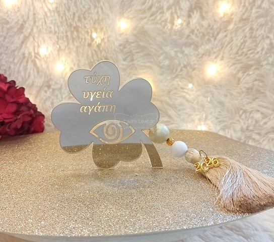 Γούρι Τριφύλλι Plexiglass Χρυσό με Φούντα