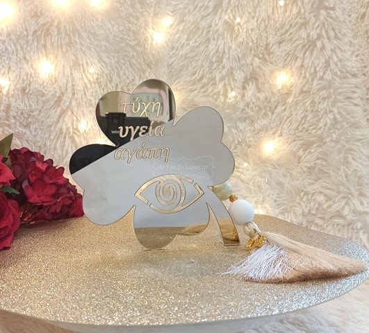 Ένα υπέροχο, χειροποίητο γούρι με κύριο υλικό το plexiglass και μεταξωτή φούντα