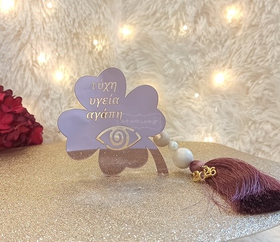 Ένα υπέροχο, χειροποίητο γούρι με κύριο υλικό το plexiglass και μεταξωτή φούντα
