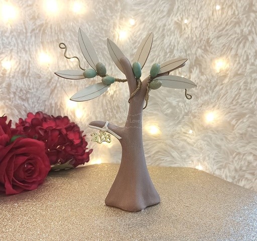 Χειροποίητη κεραμική ελιά με καφέ κορμό, καρπούς και φύλλα