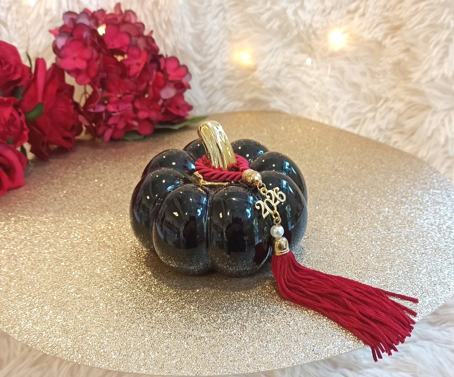 Κεραμική Κολοκύθα Μαύρη με Γούρι