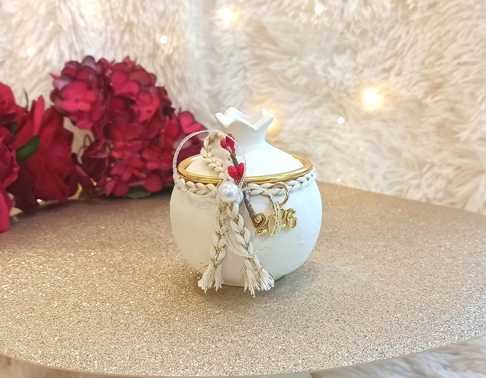 Κεραμικό Ρόδι Λευκό με Χρυσό Στεφάνι