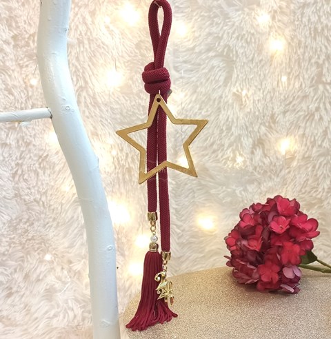 Γούρι με μεταλλικό αστέρι, φούντα και κορδόνι μπορντό