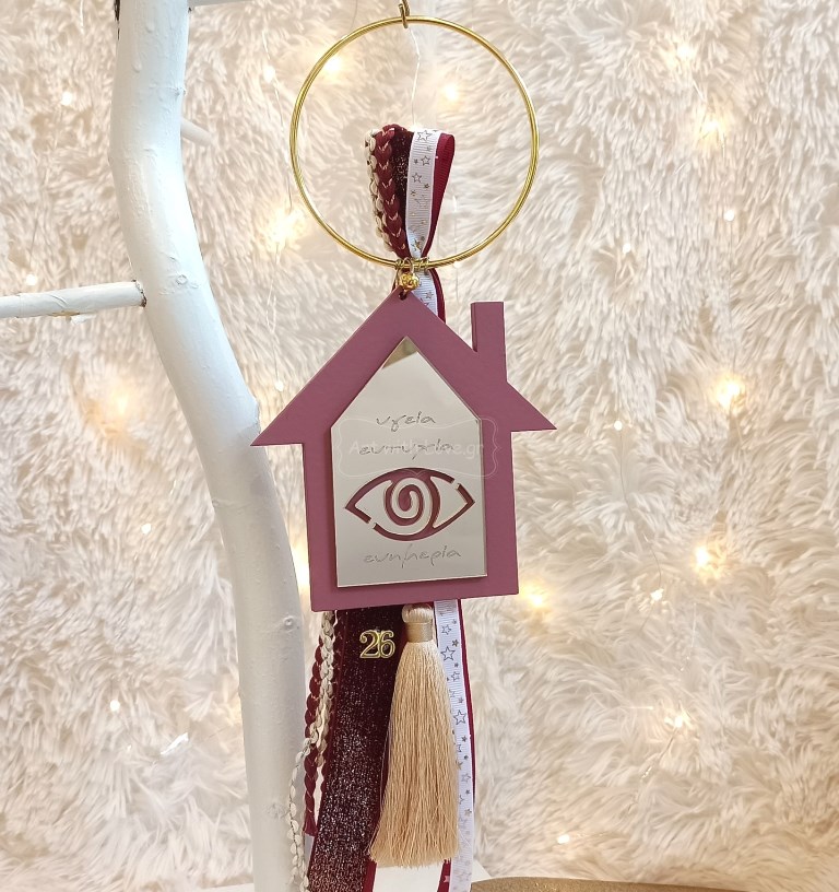 Κρεμαστό Γούρι Σπίτι Μπορντό με Μάτι και Ευχές