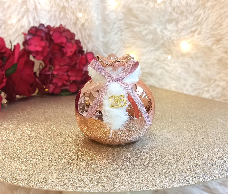 Ένα υπέροχο, χειροποίητο ρόδι σε ροζ χρυσό χρώμα με γουνάκι