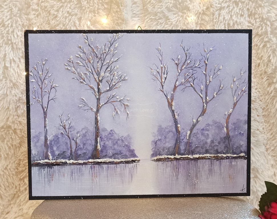 Ζωγραφισμένο Καδράκι Κλαδιά Χιονισμένα